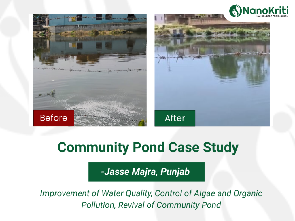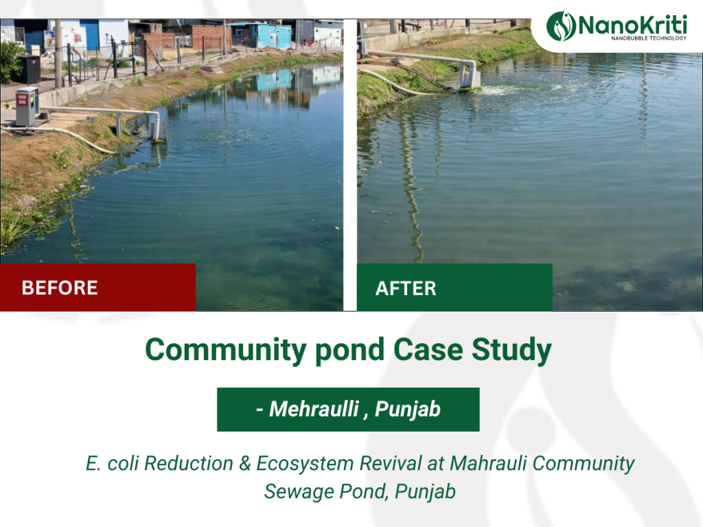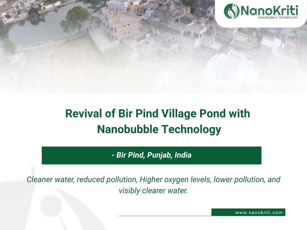 A detailed case study on pond restoration in Bir Pind, Punjab using nanobubble technology. Learn how Nanokriti improved water quality, reduced pollution, and restored ecological balance without chemicals.