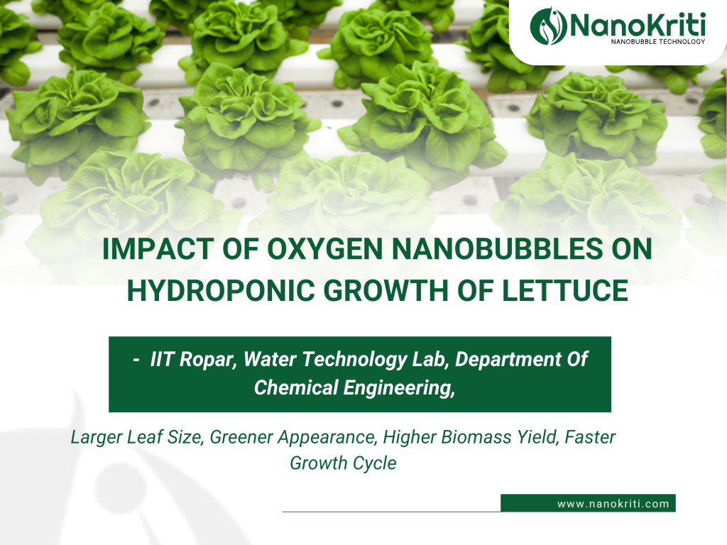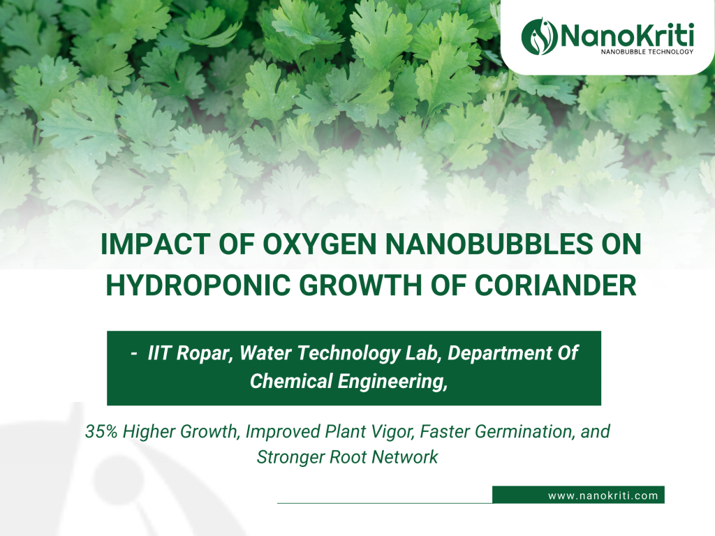 Hydroponic trial on coriander demonstrated noticeable improvements when oxygen nanobubble technology was introduced into the system. Compared to conventional conditions, plants grown with nanobubble-enriched water showed 26% higher shoot length, 23% longer root development, and around 35% increase in fresh biomass. The impact was especially visible in the root zone. Treated plants developed denser, more […]