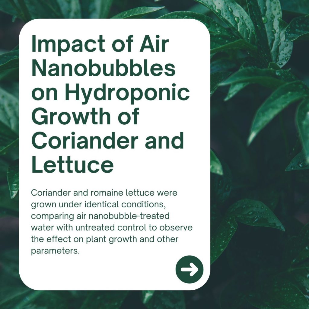 Water Technology Lab, Department Of Chemical Engineering, IIT Ropar. Hydroponics offers a sustainable and soil-free approach to crop cultivation. However, plant growth in hydroponic systems is highly dependent on dissolved oxygen (DO) levels in the nutrient solution. Low DO often limits root respiration, nutrient absorption, and overall plant productivity. Air nanobubbles (NBs), due to their […]